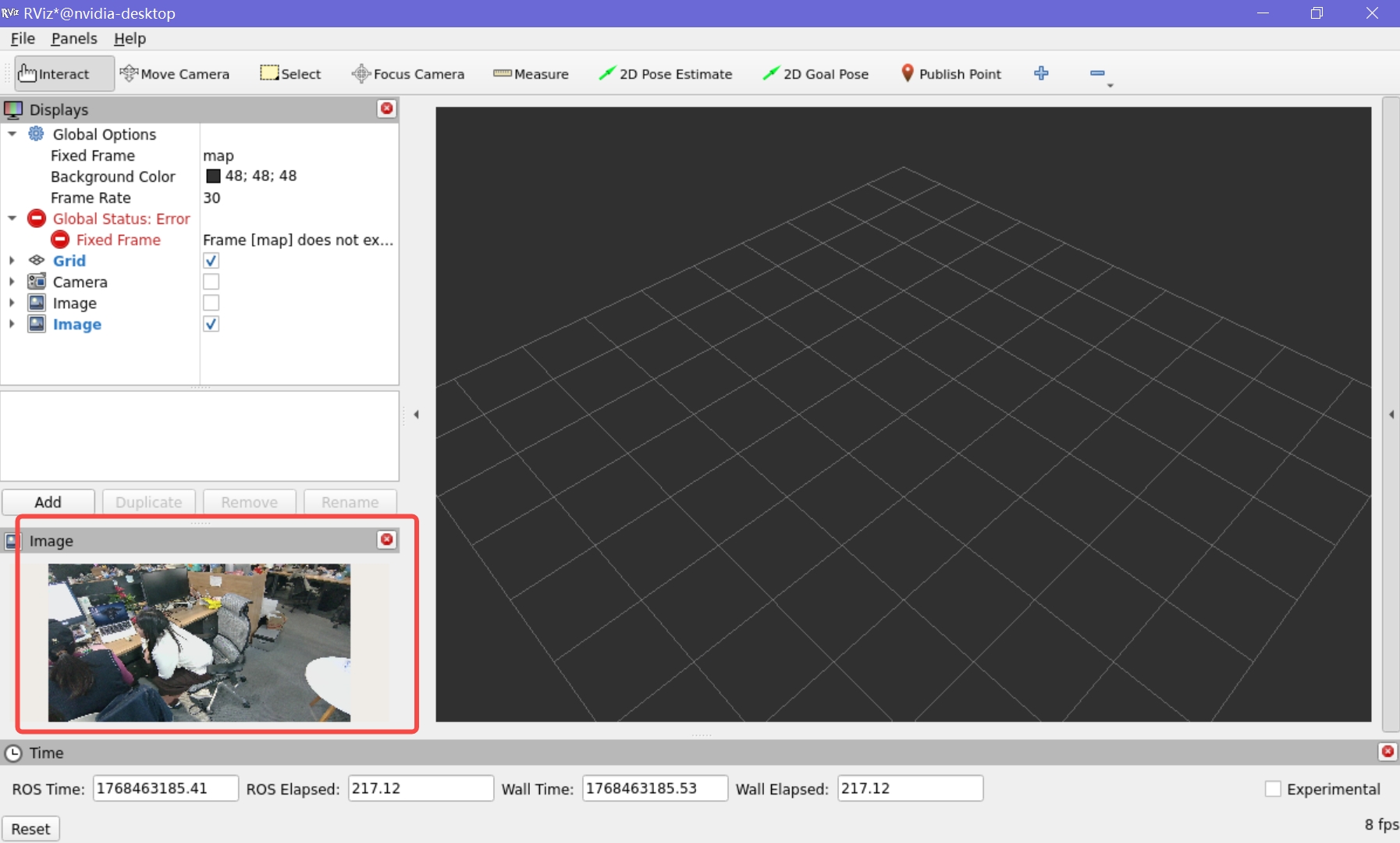 可在 rviz 窗口右下角看到相机的实时画面: