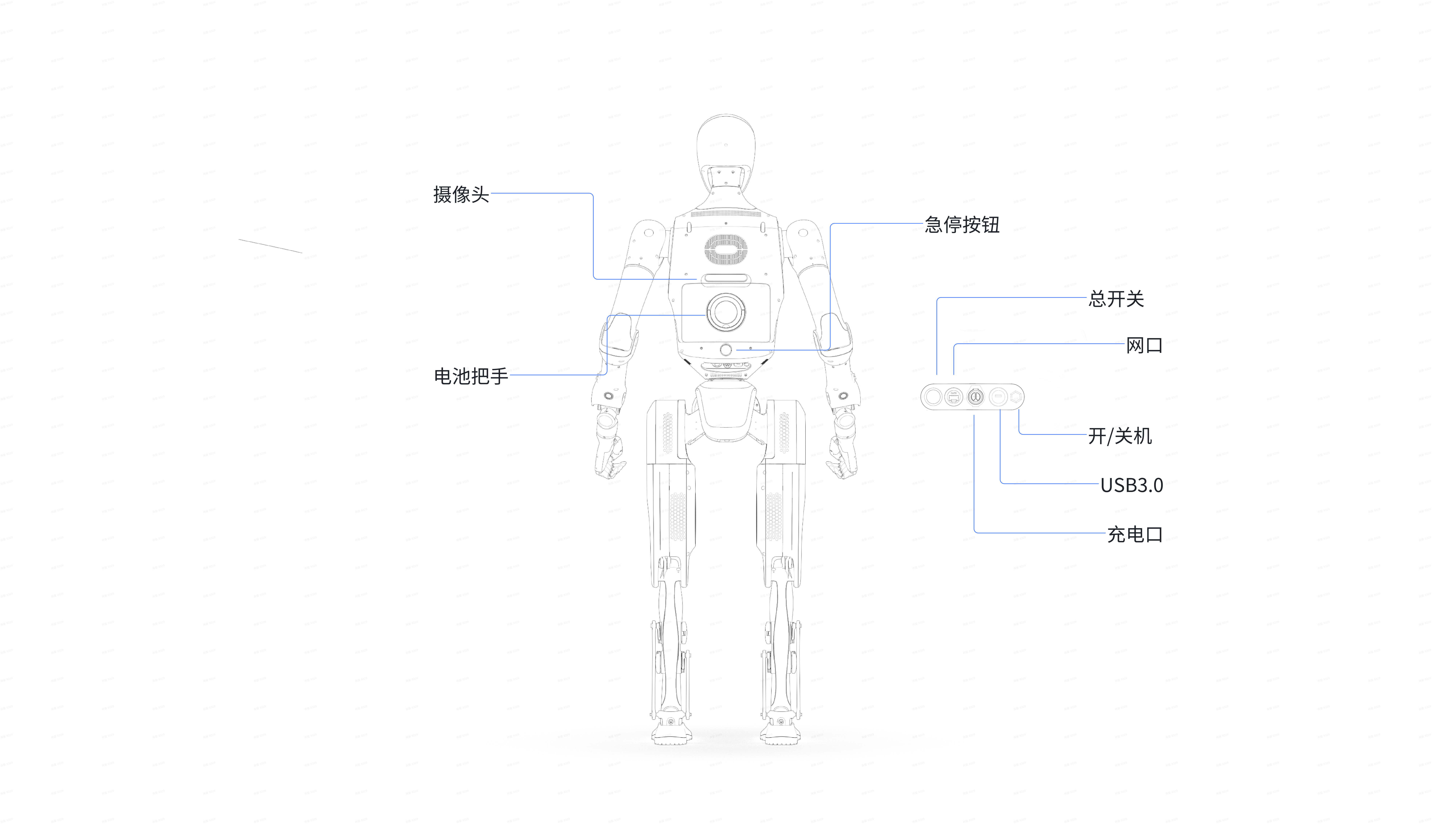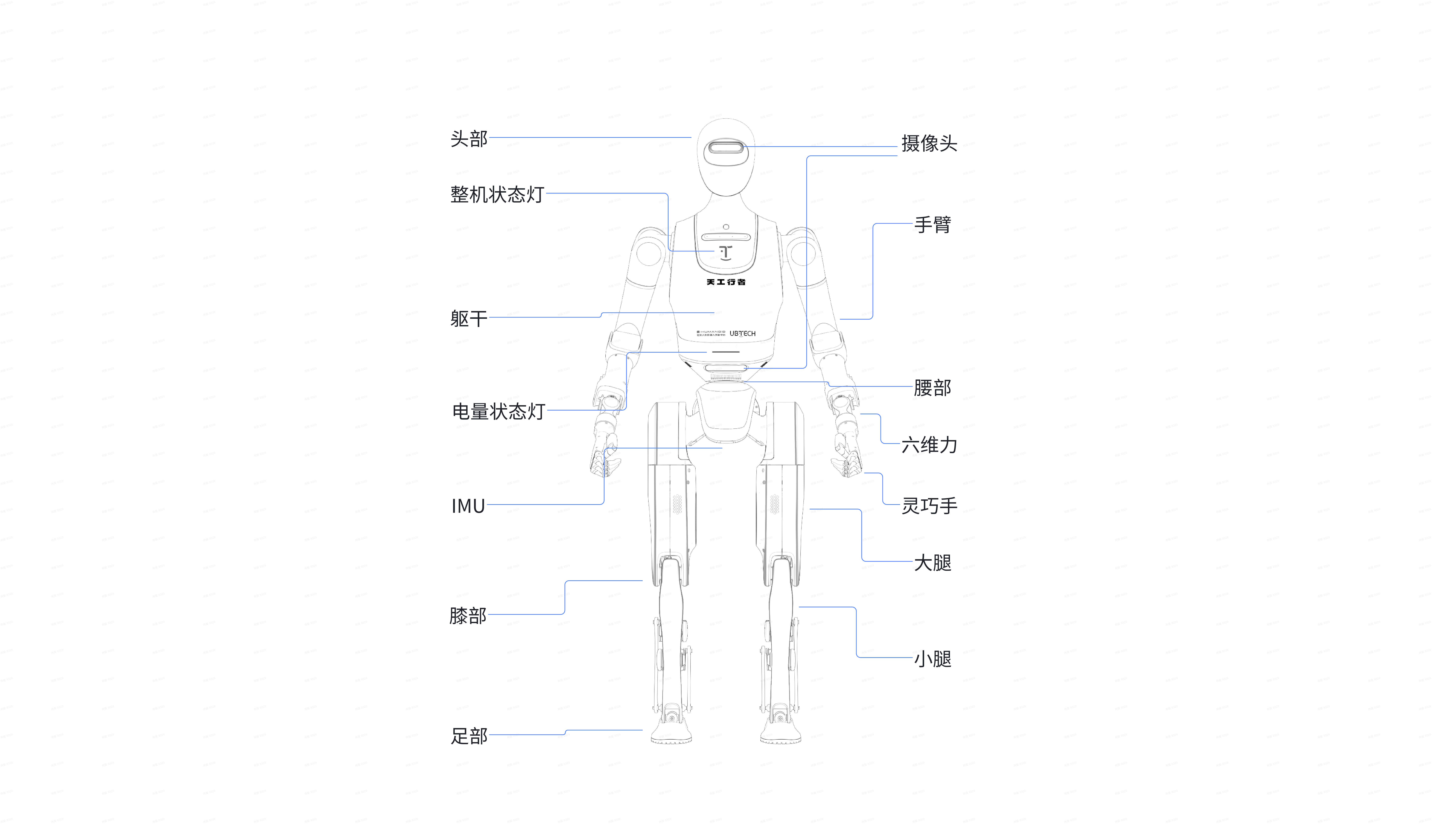 | 内部通信网络 | 全身 CAN/EtherCAT 总线通讯 腿部最大控制速率:不低于1KHz 手臂最大控制速度:400Hz | 全身 CAN/EtherCAT 总线通讯 腿部最大控制速率:不低于1KHz 手臂最大控制速度:400Hz | 全身 CAN/EtherCAT 总线通讯 腿部最大控制速率:不低于1KHz 手臂最大控制速度:400Hz |