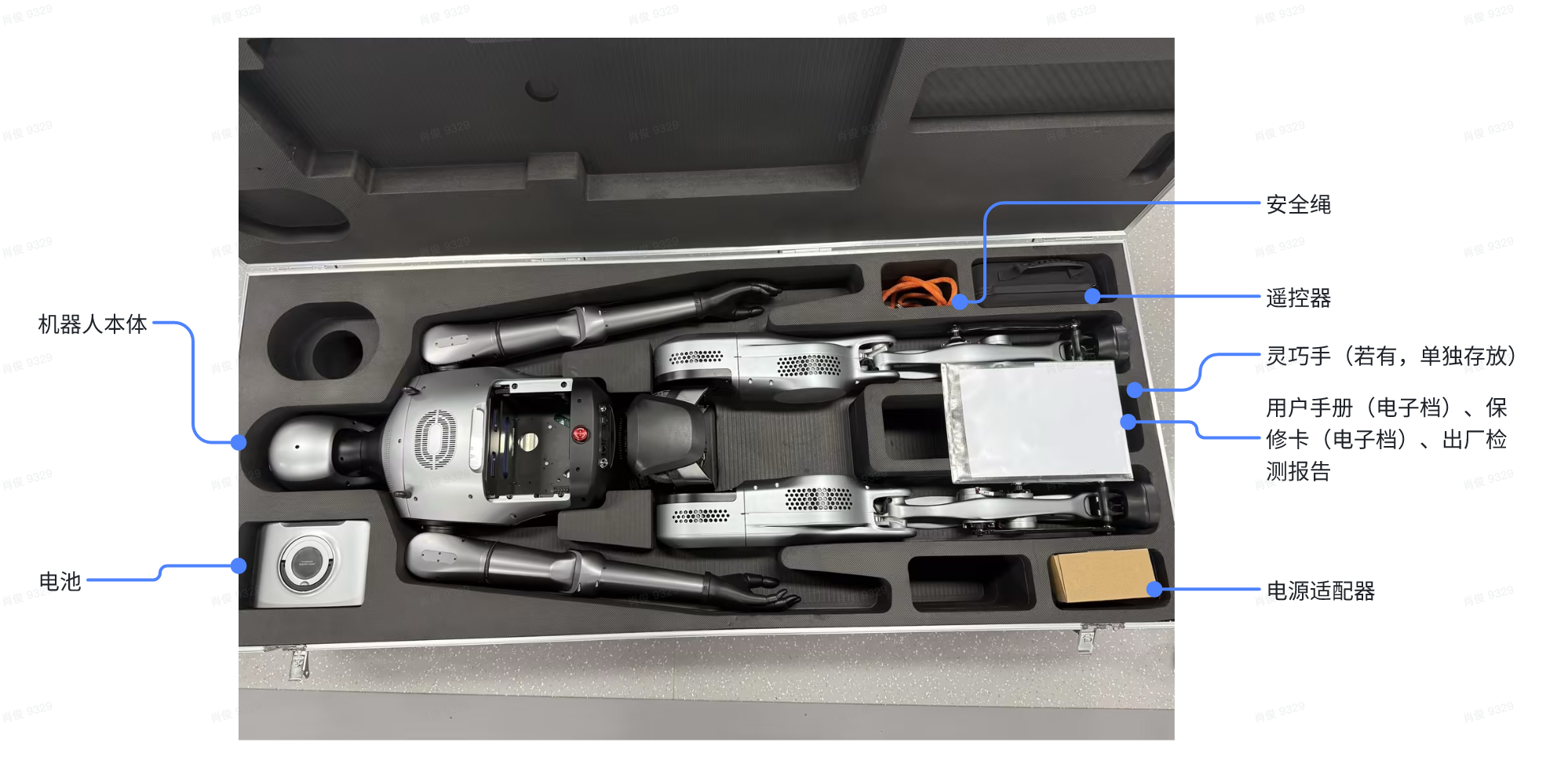 打开航空箱,箱内物品如下图所示。请根据3.装箱清单对箱内实际物品进行核对,如有缺少请及时联系售后进行补发。
