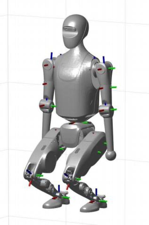 - For example, the axis of the leg hip joint Pitch is close to the Y axis (Pitch) of the complete machine, so the positive direction of the hip joint Pitch is to the left, and the positive rotation direction of the joint can be determined by the right-hand rule.