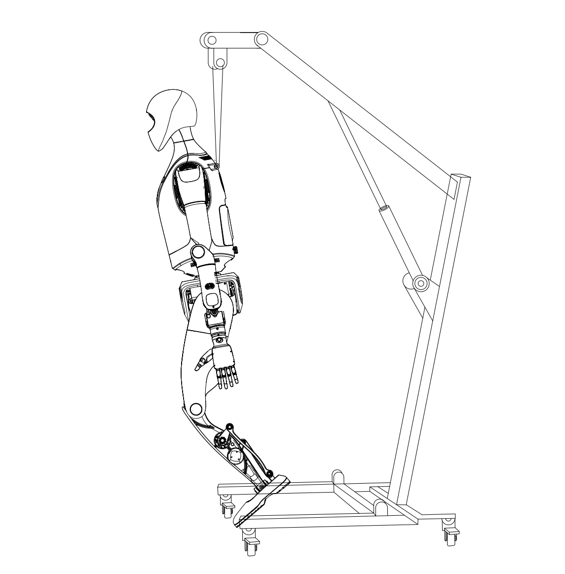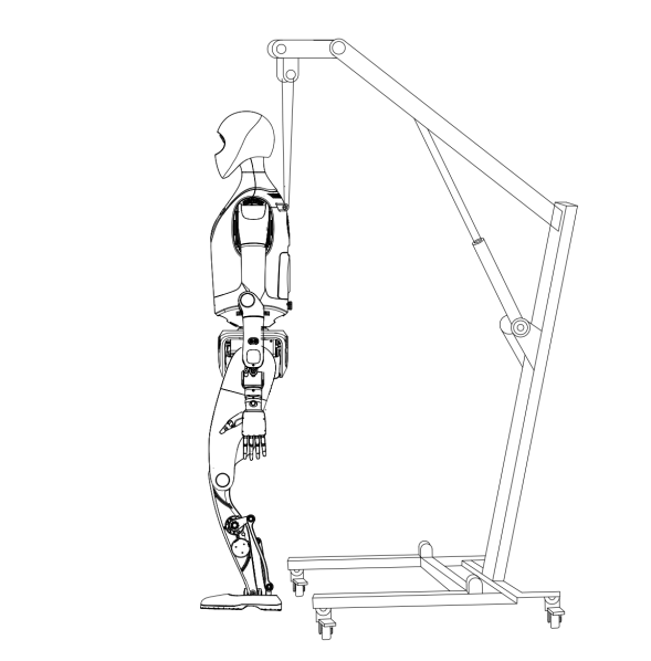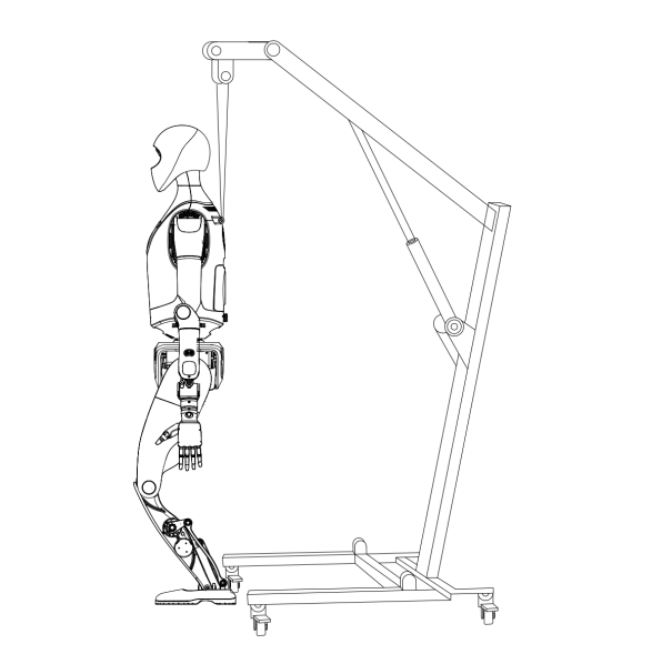 - Use the protective stand to slowly lift the robot. During lifting, pay close attention to the positions of each joint. If necessary, assign personnel to support the robot’s limbs to help it rise smoothly.