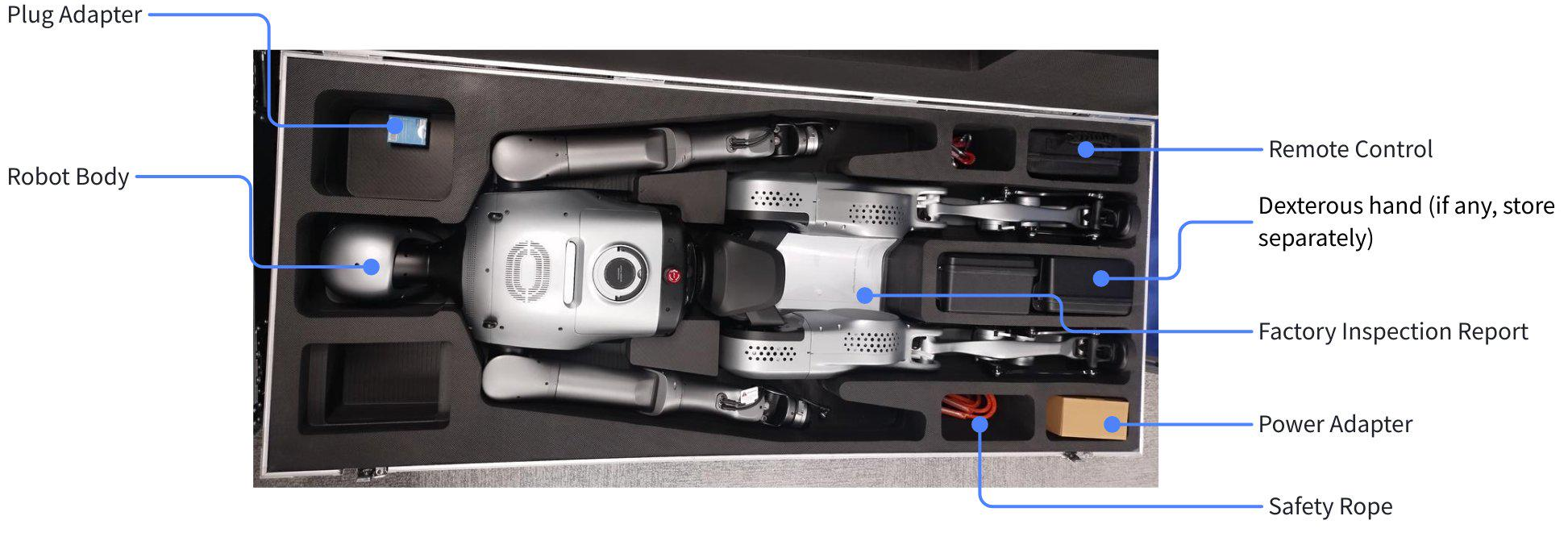 - After the robot is delivered to the user site, inspect the flight case and ensure that the case is intact. If there is any damage, please contact the logistics company and your local supplier in a timely manner.